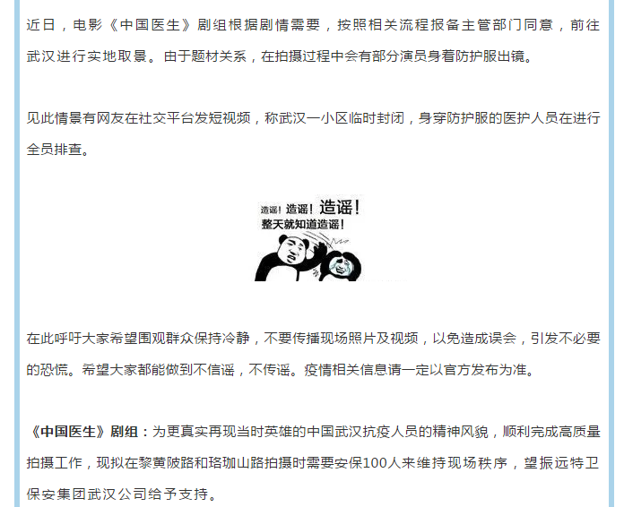 【武汉公司】振远特卫为2021年建党100周年献礼影片《中国医生》开拍保驾护航获表扬