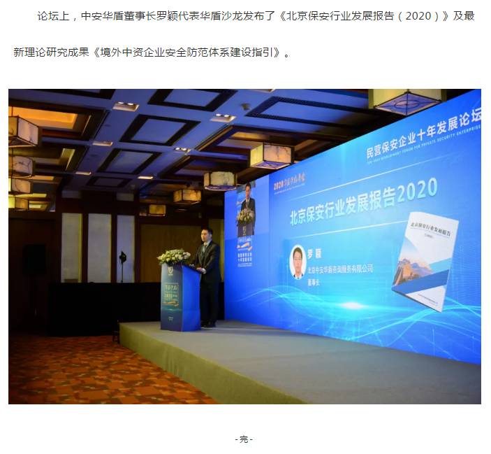 振远特卫保安集团张振军董事长应邀参加民营保安企业十年发展论坛