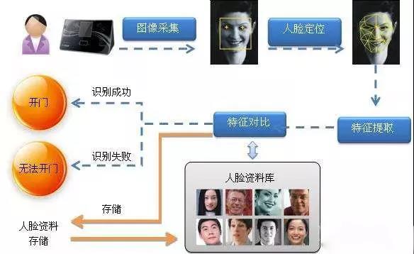 人脸识别门禁系统是采集允许访问门禁系统的全部人员的人脸信息并存储在人脸数据库中。当某一个人访问门禁系统时,人脸识别门禁系统会首先通过摄像头来获取人像信息,然后将采集的人像信息输进计算机中,再进行人脸识别。这个过程系统对来访者的人像信息进行预处理,避免表情、光照以及输入设备对结果的影响,将经过预处理的人像进行特征提取,将提取的信息与数据库中的人脸信息进行识别与对比,并记录识别的结果。一旦在数据库中识别出能够对比成功的人脸信息,门禁系统就会接收到计算机的开门指令,通过门禁系统的硬件部分实现允许来访者进入的操作;否则,计算机不会发出开门的指令,门禁系统也不会打开,还会将访问者的人脸信息进行记录,方便以后查询和监管。 由于人脸识别门禁系统能够远距离、快速、无接触式地识别、记录人脸,在有条件的建筑和小区可将门禁系统连接黑名单数据库或公安机关数据库并实时比对,及时发现可疑人员并自动预警,实现智慧安防管理