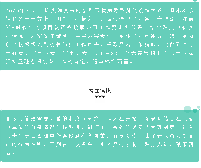 【合肥公司】是肯定 是鼓励|振远特卫驻蓝光•时代红街项目保安队获锦旗两面