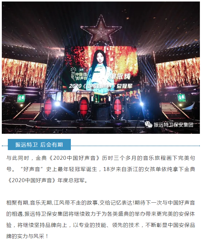 【武汉公司】不负期望 |振远特卫圆满完成2020“中国好声音巅峰之夜”安保任务