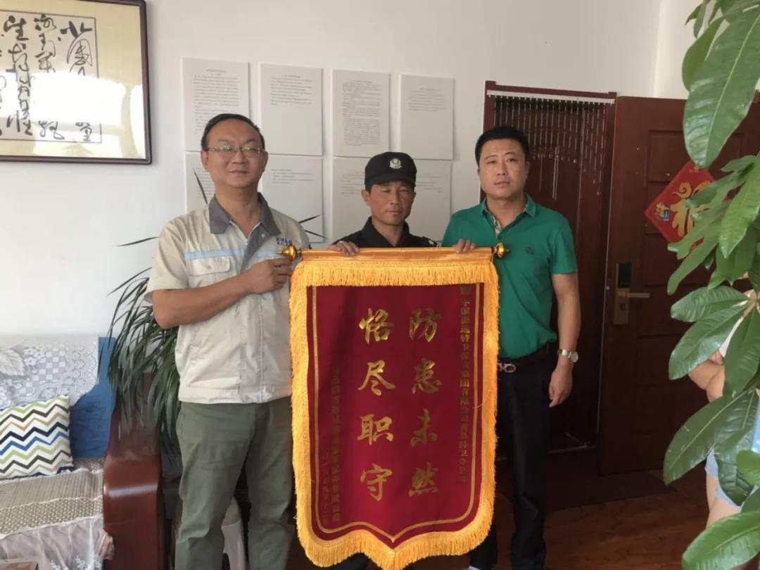 2018年9月13日,振远特卫保安集团青岛分公司项目主管吕斌携中国中车四方新城志卓公司项目全体队员接受了来自客户新城公司领导的表彰。由于我司队员在所驻车间火灾突发时迅速反应、专业应对,面对险情奋不顾身、勇往直前,不仅挽救了所驻公司数亿元的财产损失,而且避免了火烧连营的事故发生。对于我司队员此次事件表现出的沉着、专业、英勇,客户给予了充分肯定,新城公司对每名队员奖励1000元,并对项目全体队员颁发了写有“恪尽职守,防患未然”的锦旗。